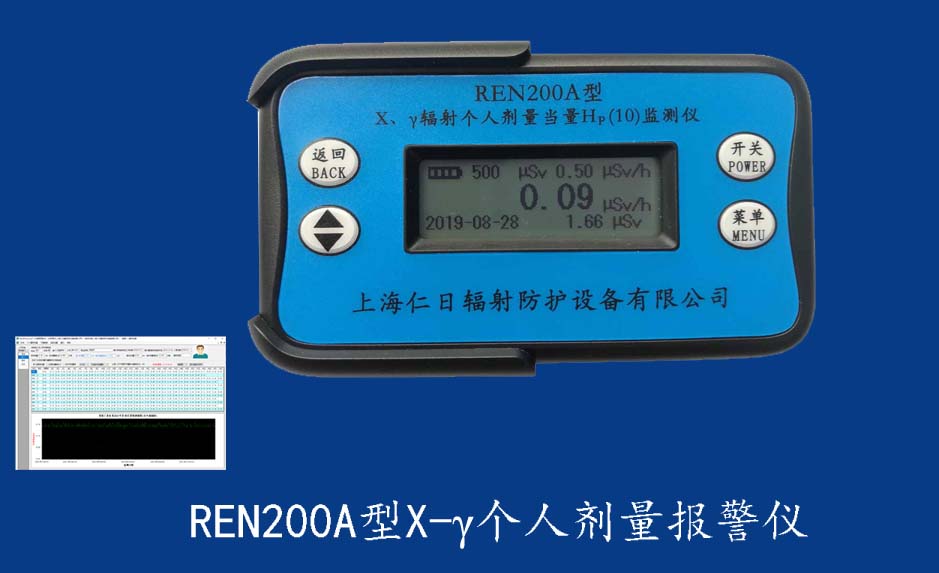 REN200A 個人輻射報警儀REN200A型X、γ輻射個人劑量當量HP(10)監測儀(簡稱:個人劑量報警儀)內置高靈敏度蓋格計數管為探測器,主要用來監測各種放射性工作場所的X、γ以及硬β射線的輻射,具有響應快,測量范圍寬的特點。能顯示工作場所的劑量當量率和累積劑量,更換電池時,日期及累積數據能永久保存。可選配RenRiPersonal個人劑量管理軟件,該軟件可存儲多個人的歷史數據,能記錄日累積、月累積、年累積、輻照時長、計算平均劑量率、扣除或不扣除本底輻射,且以文字和圖譜的方式展現數據。廣泛應用于核電站、加速器、鋼鐵、化工、同位素應用、工業X、γ無損探傷、放射醫療、鈷源治療、γ輻照、放射性實驗室、核設施周圍環境監測等領域中的工作人員進行個人安全防護監測及放射性提示。&nb